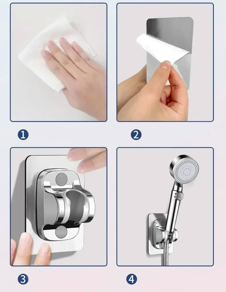 Практичний та надійний тримач для душової лійки з установкою без свердління. Кріпиться на міцну вологостійку клейову основу, не ушкоджує плитку та підходить для більшості стандартних ручних лійок.